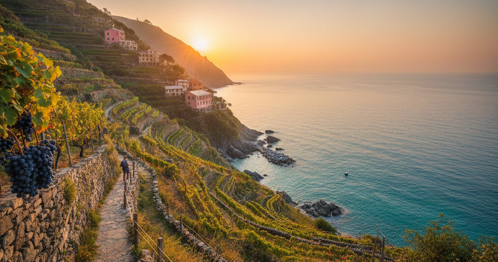 Our soulful experience will enfold between Riomaggiore and Manarola, from the sea to the suspended vineyards — where wine is born from what the locals call heroic viticulture. The vineyards…